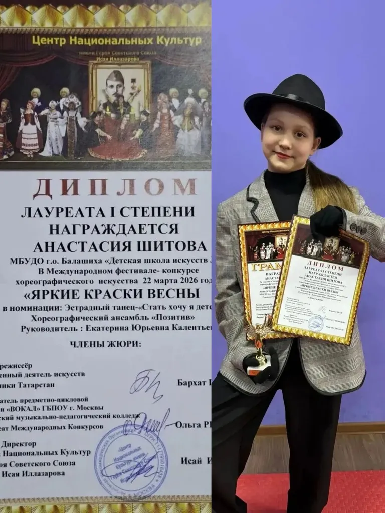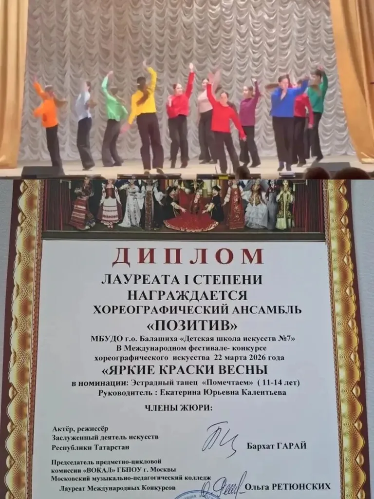 Поздравляем хореографический коллектив ансамбль "Позитив" (рук. Калентьева Е.Ю.) с победами в Международном фестивале-конкурсе хореографического искусства "Яркие краски весны", 22 марта 2026г.