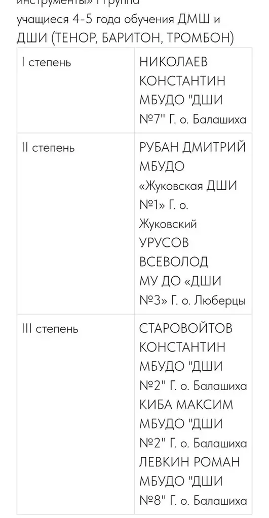 Поздравляем победителей Московского областного открытого конкурса исполнителей на духовых инструментах им. В. М. Халилова - учащихся оркестрового отдела (медные духовые инструменты):